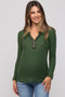 A velvet maternity dress with a deep v-neckline, long cinched sleeves, and a gathered bottom tier.