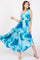 Blue Watercolor Satin Pleated One-Shoulder Asymmetrical Midi Dress
