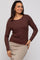 A basic top featuring long raglan sleeves and a rounded neckline. Rolled accents along the neckline, sleeves, and bottom hem.
