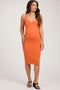 Details A rib knit maternity midi dress with a scoop neckline and short sleeves. Content + Care
