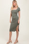 Brown Ribbed Fitted Sleeveless Snap Button Dress