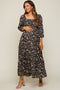 A striped fitted maternity maxi dress featuring a side slit and a square neckline.