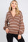Brown Striped V-Neck Collared Sweater