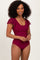 Burgundy Crochet Detail Ruched One Piece Swimsuit