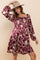 Burgundy Floral Satin Long Sleeve Dress