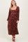 Burgundy Floral Velvet Smocked Midi Dress