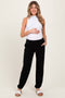 A rib knit maternity sweater featuring a rounded neckline, an exposed center front seam, and an exposed center back seam.