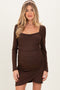 Burgundy Ribbed Long Sleeve Ruched Tulip Skirt Dress