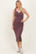 Burgundy Stripe Ribbed Sleeveless V Neck Maxi Dress