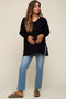 A chunky knit maternity sweater featuring long sleeves and a rounded neckline.