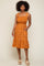 Camel Floral Shoulder Tie Smocked Midi Dress