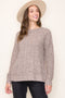 A pattern knit sweater featuring a rounded neckline and long sleeves.