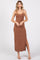 A sleeveless ribbed dress featuring adjustable cami straps, a side slit and a rounded neckline.