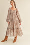 Camel Striped Sweater Knit Shoulder Tie Maternity Midi Dress