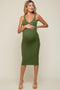A soft knit tile printed maternity midi dress featuring a square neckline, an adjustable tie at the waist and side slits.