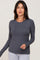 A lightweight knit top featuring a crew neckline and long sleeves with a thumbhole cutout.