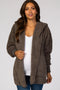 Charcoal Button Front Ribbed Trim Hooded Maternity Sweatshirt