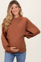 A soft chenille, open knit maternity sweater. Features a ribbed rounded neckline, long sleeves, and a ribbed hem.