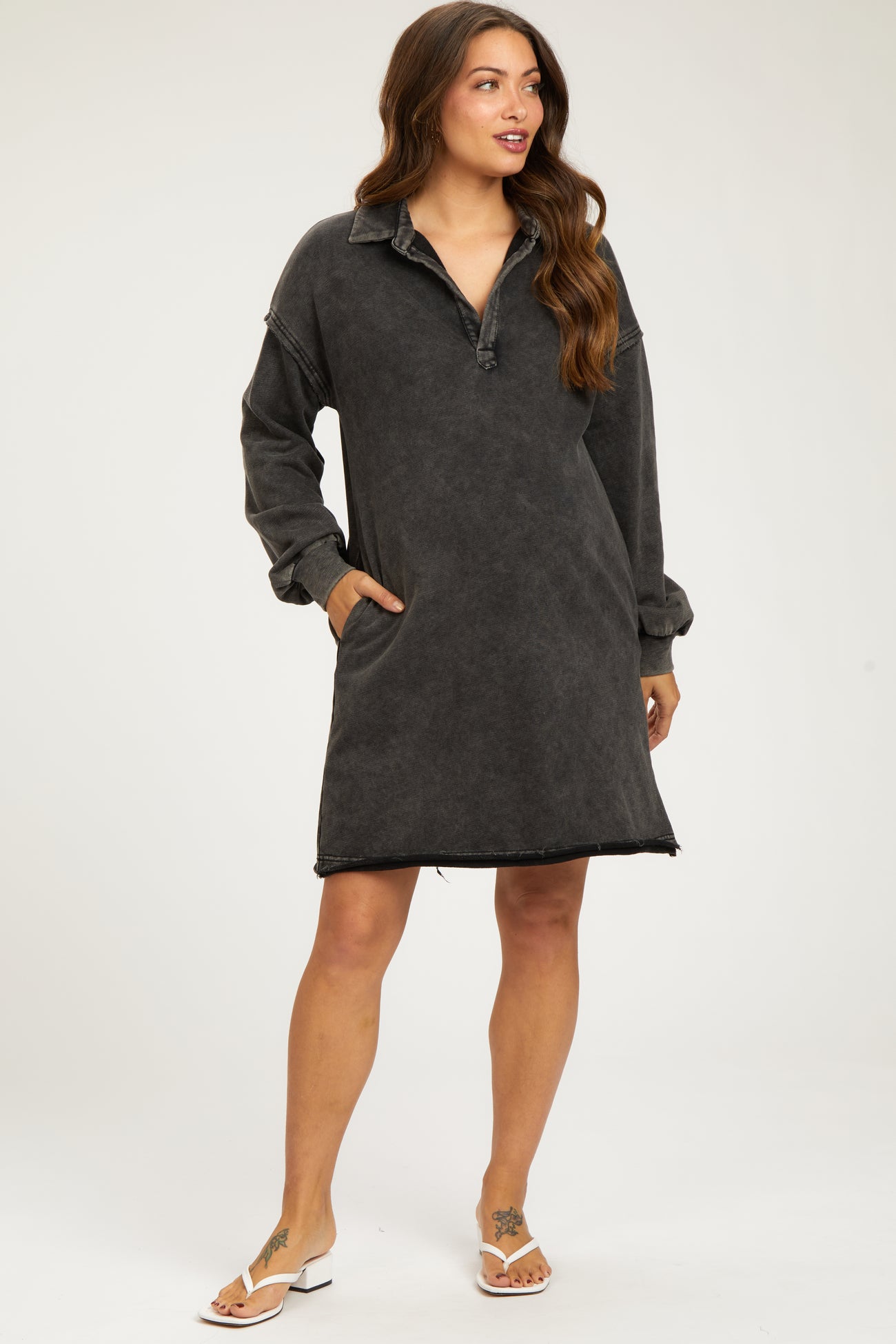 Charcoal Collared French Terry Raw Edge Maternity Dress