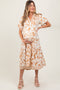 A french terry maternity dress featuring flutter sleeves, a tiered skirt, a raw hem and a collared neckline.