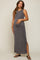 Details A solid sleeveless maternity midi dress with one side slit. Content + Care