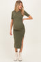 Charcoal Side Tie Side Slit Maternity Midi Dress