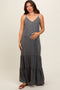 Charcoal Washed Ribbed Puff Sleeve Maternity Dress