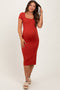 Coral Multi Floral Print Ruched Shoulder Tie Maternity Midi Dress