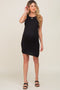 A maternity midi dress with a v-neckline, short flounce sleeves, smocked back waistband, and ruffle accent tiered skirt. Front of the top and skirt are lined.