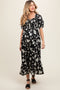 Cream Balloon Sleeve Embroidery Mesh Maternity Midi Dress