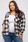 A plaid long sleeve plus top with a collared neckline and button down front. Also includes front chest pocket.