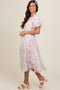 Cream Chiffon Ruched Lettuce Edge Ruffle Midi Dress