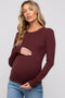 A solid chunky knit maternity cardigan with an open front and puff sleeves.