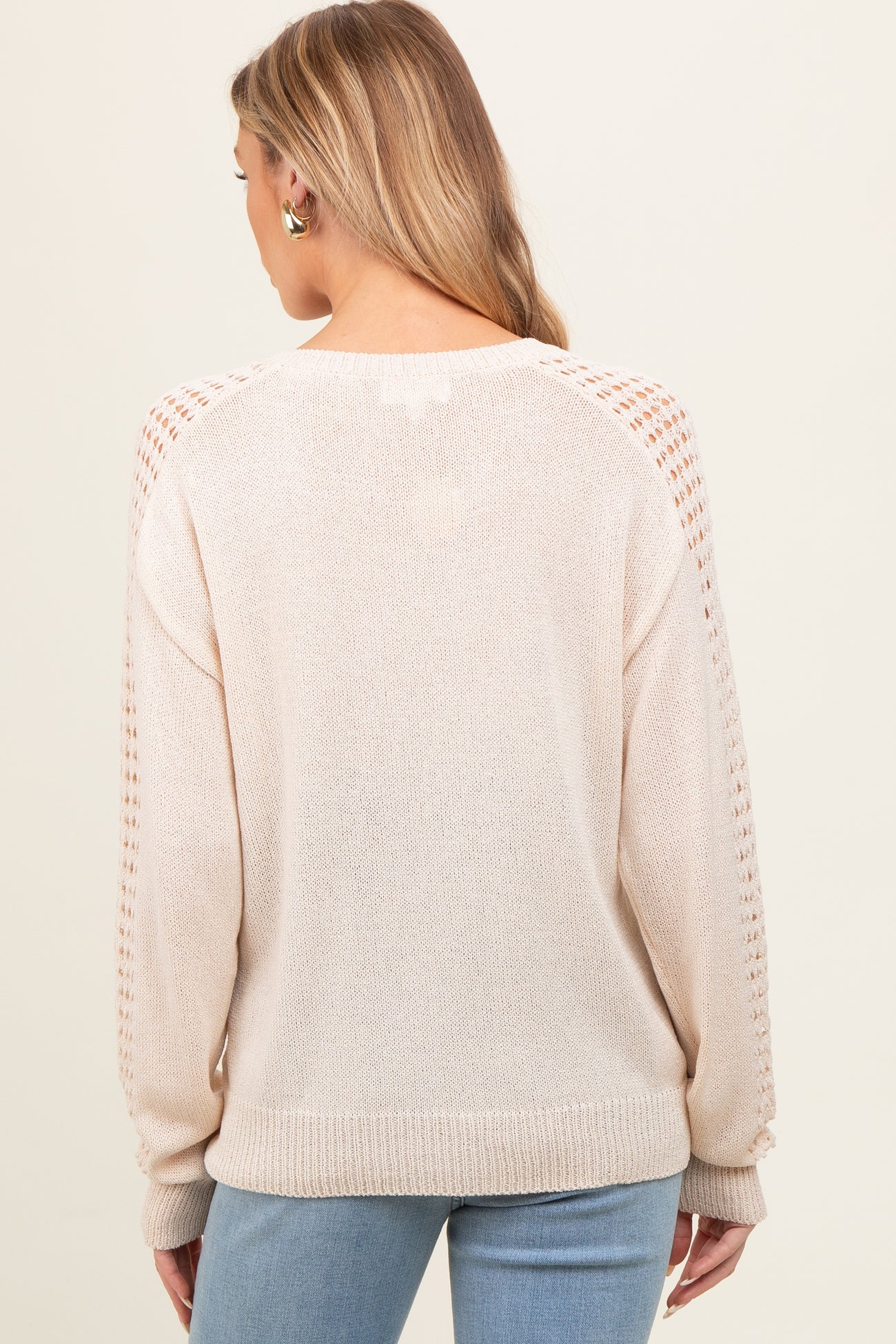 Cream Crochet Detail Sleeve Knit Maternity Top