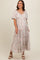 Cream Floral Ruched Strappy V-Neck Front Puff Short Sleeve Maternity Midi Dress