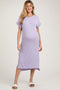 A floral print maternity midi dress featuring a smocked elastic top, a v-neckline, short flutter sleeves, a ruffle hem and double lined.