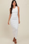 Cream Linen Fringe Accent Side Slit Midi Dress