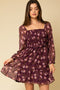 A ribbed dress featuring a square neckline, short puff sleeves, a button front and floral embroidery.