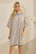 Meet your new everyday favorite: the Cream Stripe Knit Short Sleeve T-Shirt Dress! Crafted from soft, breathable knit fabric, this dress offers all-day comfort without sacrificing style. Featuring classic cream and taupe stripes and a relaxed silhouette, it’s perfect for casual outings, brunch dates, or running errands. The short sleeves and knee-length hem make it a versatile piece you’ll reach for again and again. Pair with sneakers for a laid-back look or dress it up with sandals and layered jewelry. Effortlessly chic and endlessly comfortable—this is the t-shirt dress your wardrobe needs!