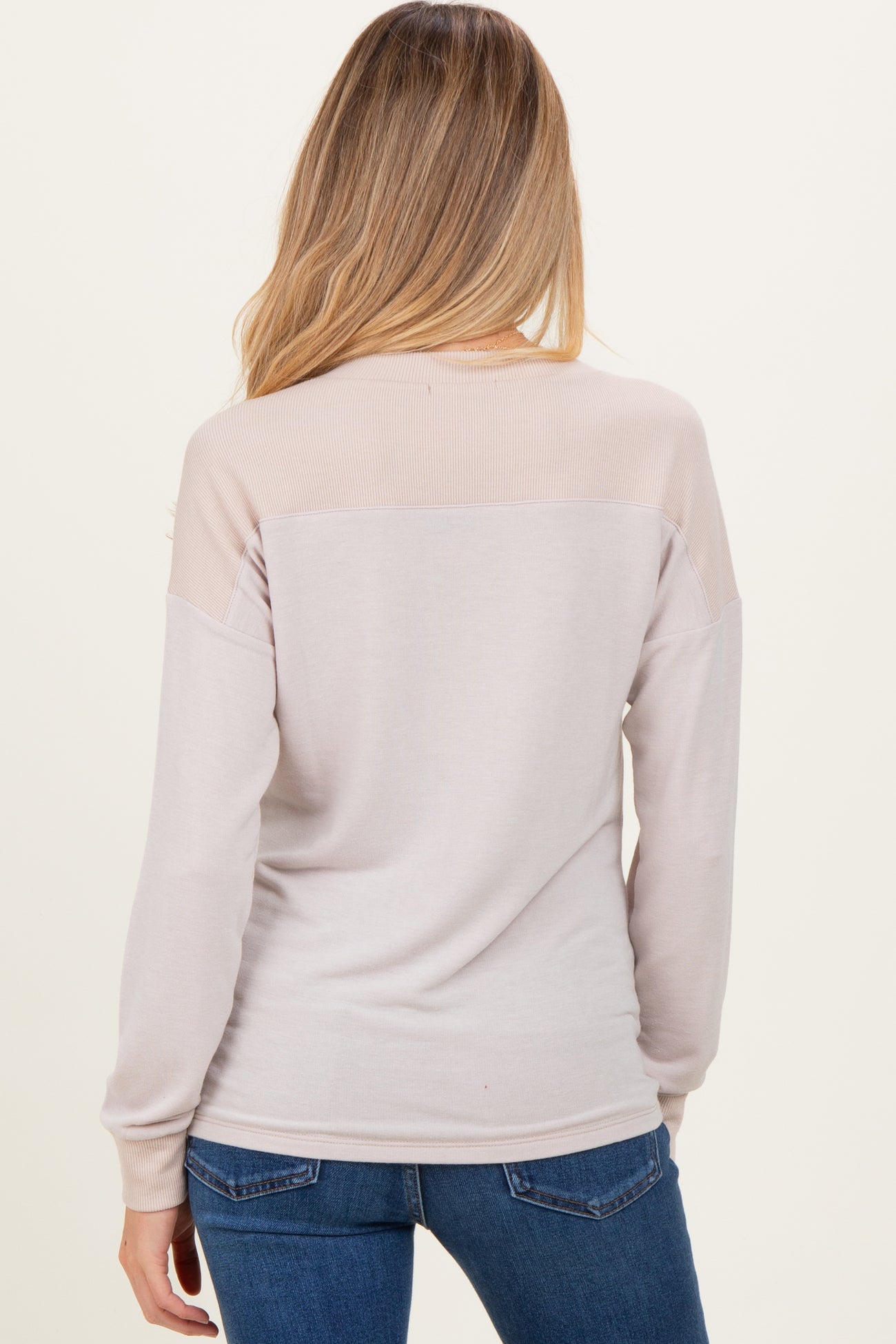 Cream V-Neck Knit Maternity Long Sleeve Top