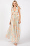 Dark Teal Floral Ruffle Neck Tiered Maxi Dress