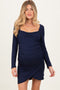 Dusty Blue Polka Dots Sweetheart Neck Maternity Midi Dress