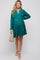 A solid velvet maternity dress with a deep v-neck, long sleeves, small side slits and side pockets.