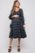 Details A plaid print maternity midi dress featuring a v-neckline, a smocked bodice, long sleeves, an adjustable tie at the waist and an A-line skirt. Content + Care