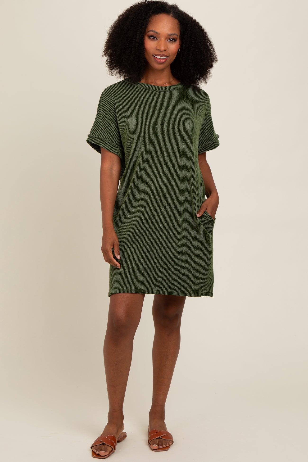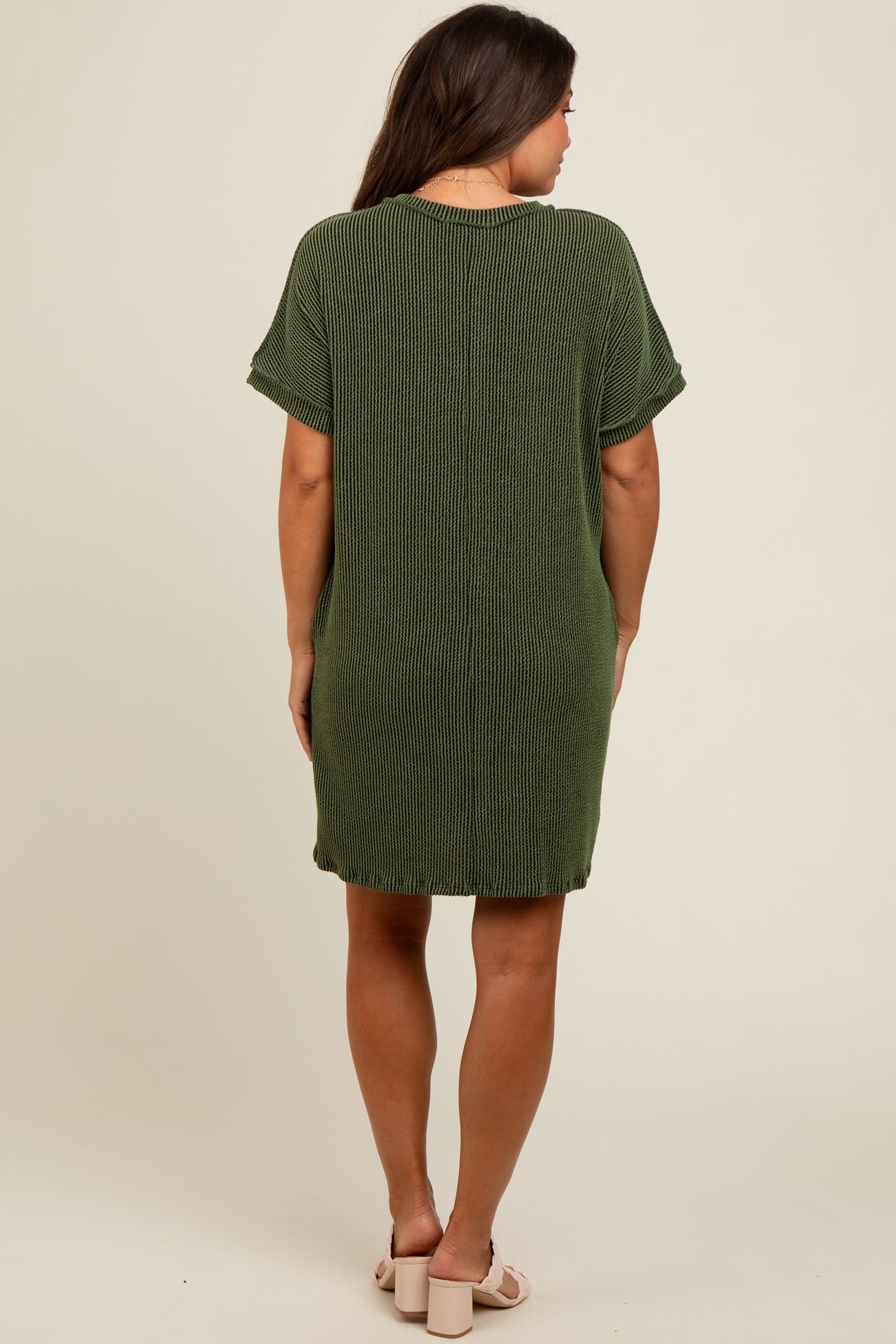 Forest Green Ribbed Rolled Cuff Maternity Dress