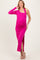 Fuchsia Asymmetric Sleeve Open Back Maternity Maxi Dress