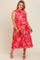 Fuchsia Floral Ruffle Mock Neck Tiered Maternity Plus Midi Dress