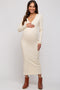 Details A solid hue maternity top with a v-neckline and long puff sleeves. Content + Care
