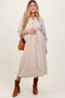 A pleated maternity maxi dress featuring adjustable straps, a scoop neckline, a v-back, and full lining.