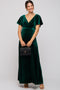 A solid chiffon maternity short dress in a swiss dot material with a smocked bust with ruffle accent and tie back detail. Sleeves are semi sheer and body is lined.